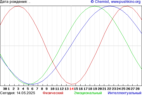 Но есть циклы присущие только конкретному человеку. Установлено что физическая, эмоциональная и интеллектуальная активность людей, меняются с периодичностью 23, 28, и 33 дня соответственно.