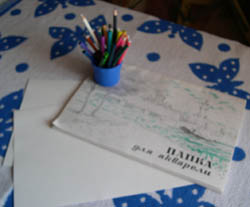 акварели. Итак, нам понадобится: большой лист бумаги, старые рваные